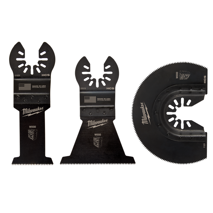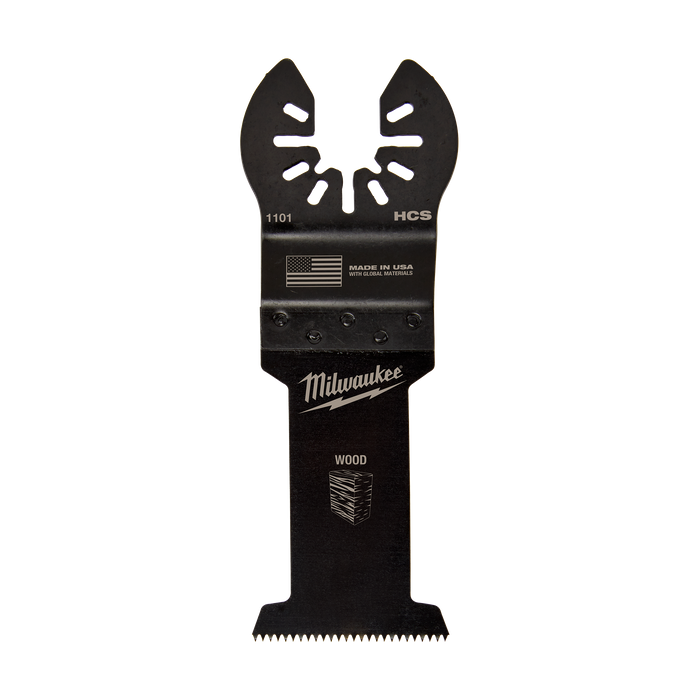 The Milwaukee Universal Fit OPEN-LOK™ Oscillating Multi-Tool HCS Wood Blades are made from premium high carbon steel with an aggressive tooth design and longer length, making this the ideal blade plunge cuts. This blade provides you with fast cutting performance in wood, PVC, drywall, and other soft materials. These MILWAUKEE® OPEN-LOK™ Multi-Tool Blades are designed and made in the USA with global materials. The HCS Wood Blades are available in a 1 or 3 packs for the 35mm, 63.5mm cutting widths and in a 1 pack for the 89mm cutting width blade.