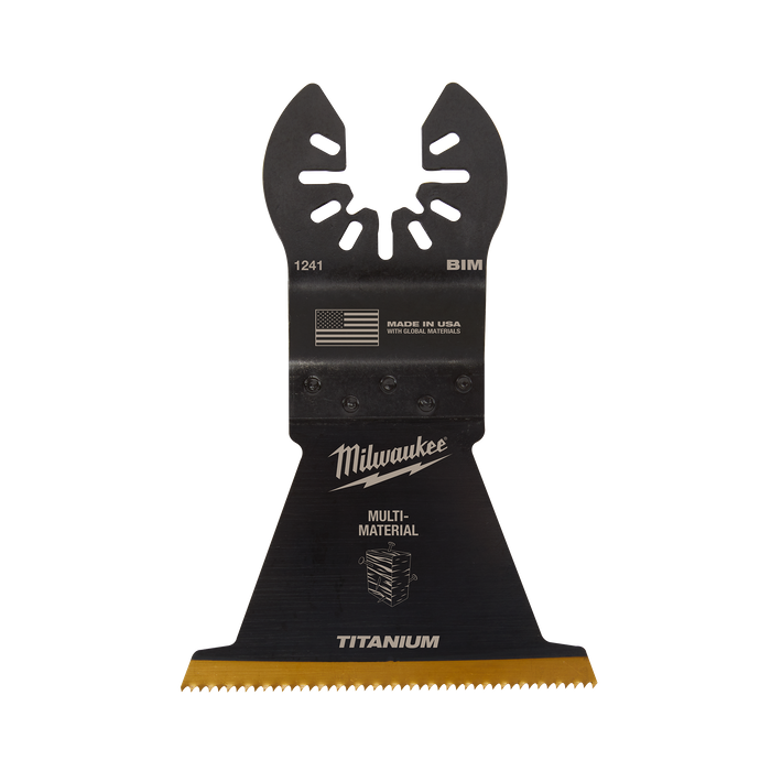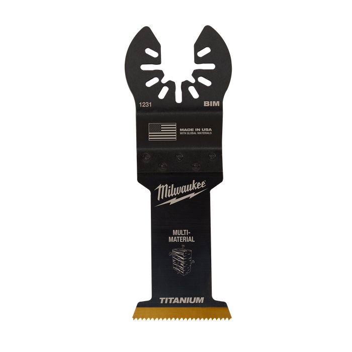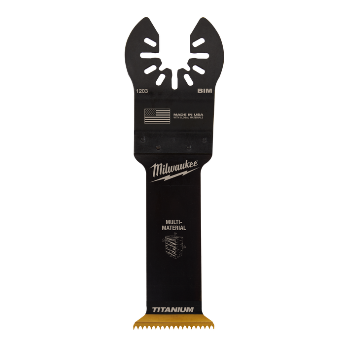 Our Universal Fit OPEN-LOK™ Titanium Enhanced Bi-Metal Multi-Material Oscillating Multi-Tool Blades are made from premium high-speed steel. These bi-metal blades are ideal for cuts in wood, nails, PVC, and drywall. The MILWAUKEE® Bi-Metal Multi-Tool blades are enhanced with a titanium coating to deliver longer life and faster cuts than the previous generation. These oscillating multi-tool blades are designed and made in the USA with global materials. Available in 9.5mm, 32mm cutting widths in 1 packs and 35mm, 63.5mm cutting widths in 1 or 3 packs.