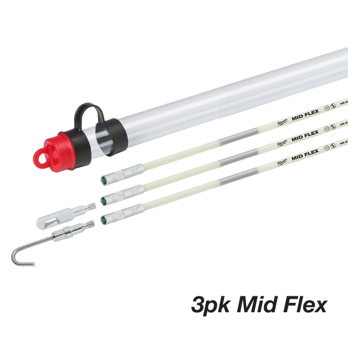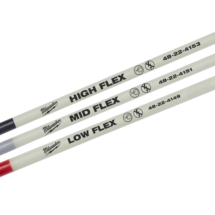 The Milwaukee Fish Sticks feature strong durable connections and a bright glow. The knurled grip provides you with easy threading while a coating protects against splinters. Available in low, mid, and high flexibility, each 5' electrical fish stick is colour-coded by flexibility providing you with easy identification. All Milwaukee fish sticks and fish stick accessories are compatible with one another.