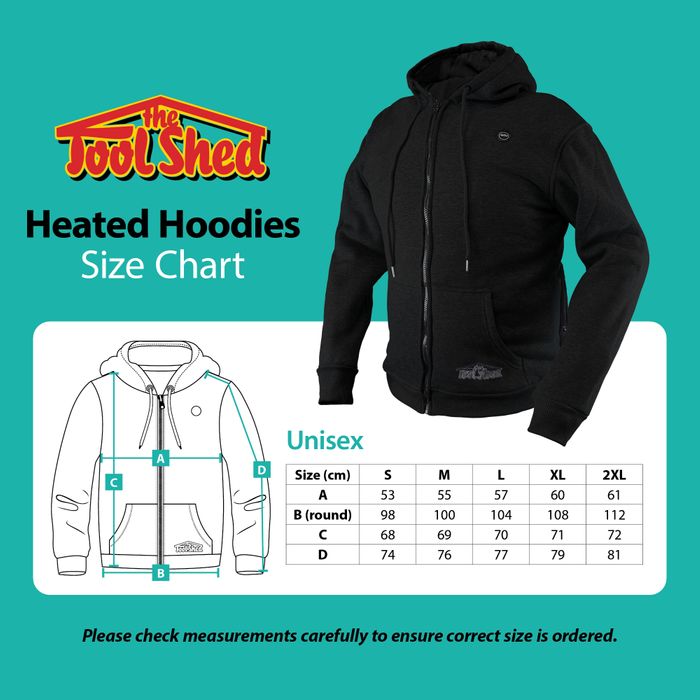 The ToolShed Heated Hoodie offers the comfort of heated clothing with a more casual look than our Heated Jackets. Made from a very durable cotton/polyester outer and fully lined with polyester, this hoodie is very comfortable to wear in many different situations such as on the work site (under hi vis vests), early morning kid's sports games, rugby matches in the evening, snow skiing - the list goes on!
