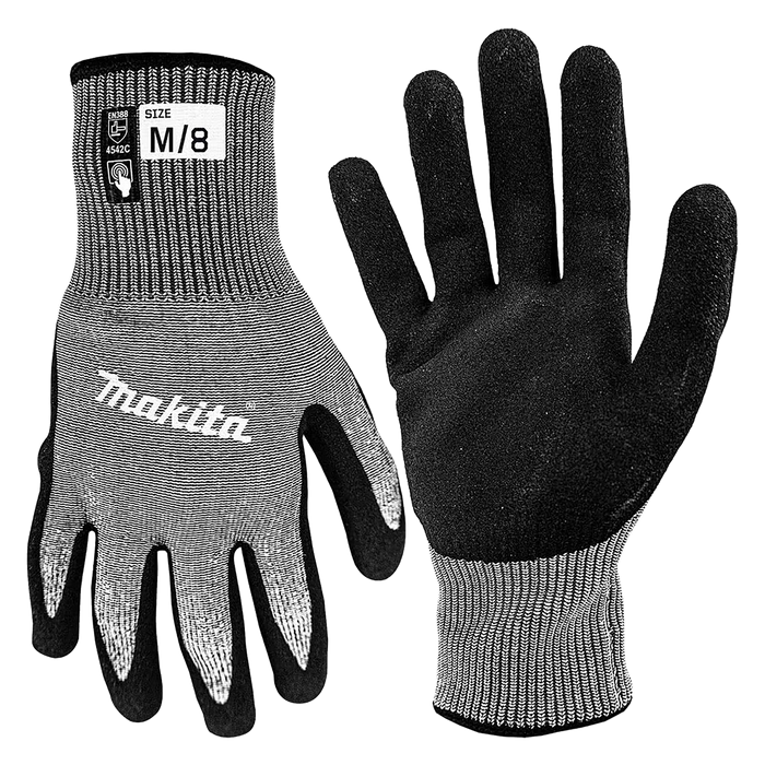 Makita C5 Cut Resistant Gloves are both strong and flexible, with high dexterity in the finger and wrist area, and Nitrile coating in the palm for added grip