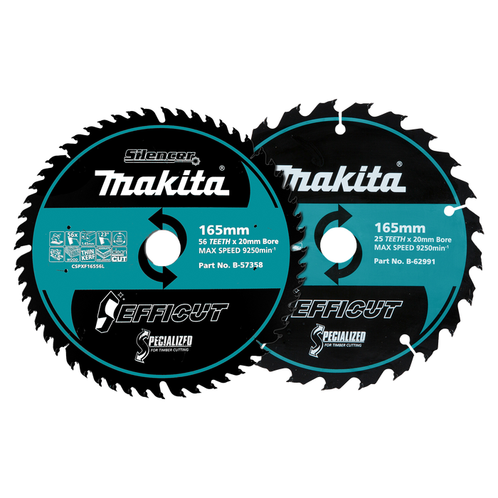 Makita Efficut Wood Cutting Circular Saw Blade 165mm 2pc