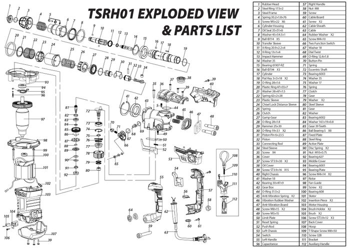 ToolShed TSRH01 Rotary Hammer Drill Parts