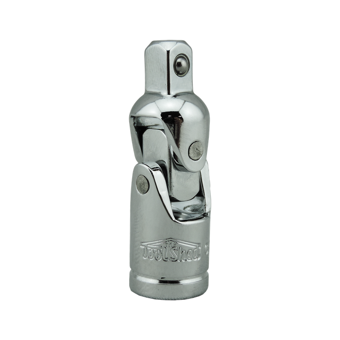 The ToolShed Universal Joints available in a 1/4in, 3/8in, and 1/2 in Drive are crafted from Heat-Treated Chrome Vanadium Steel, meaning these joints ensure exceptional strength and durability, guaranteeing reliability for any task. The polished chrome finish not only enhances aesthetics, but also provides corrosion and abrasion resistance, ensuring longevity. Equipped with a spring-loaded ball detent, your sockets remain securely locked in place during operation.