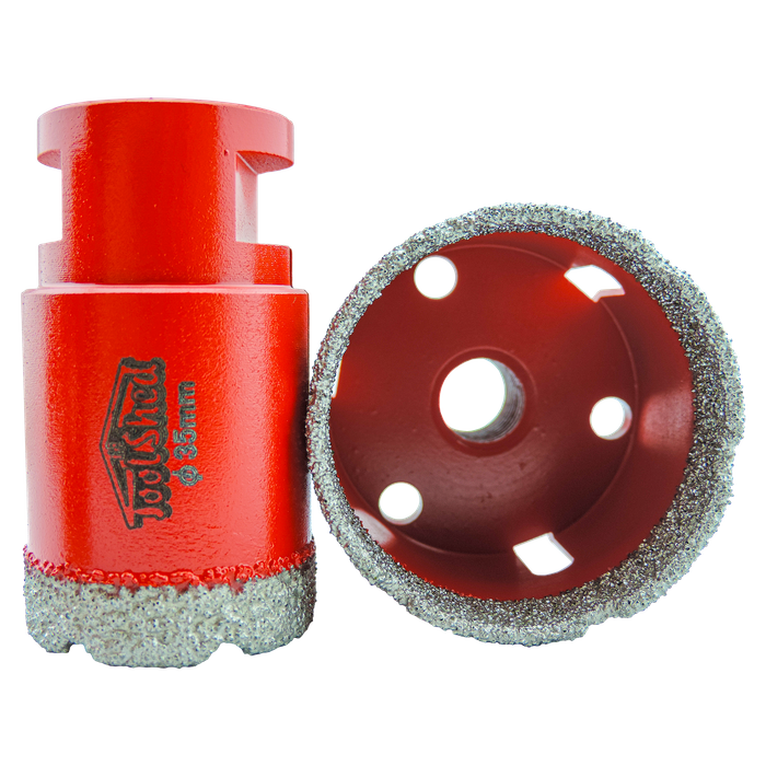 The ToolShed Vacuum Brazed Diamond Hole Saws ranging from 25-80mm are versatile and durable bits designed to tackle a wide range of materials with ease. With their M14 thread, these hole saws are compatible with most angle grinders. Featuring a generous 35mm cutting depth, they deliver precise, efficient cuts through tough materials such as tile, glass, marble, granite, ceramics, and brick.