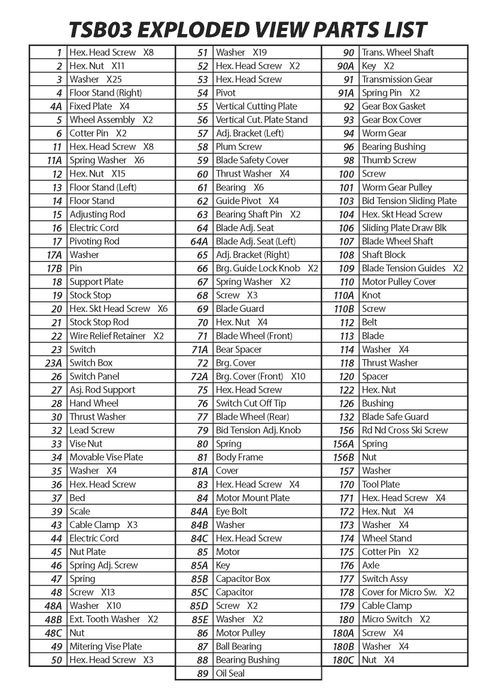 Parts for TSB03 Metal Cutting Bandsaw