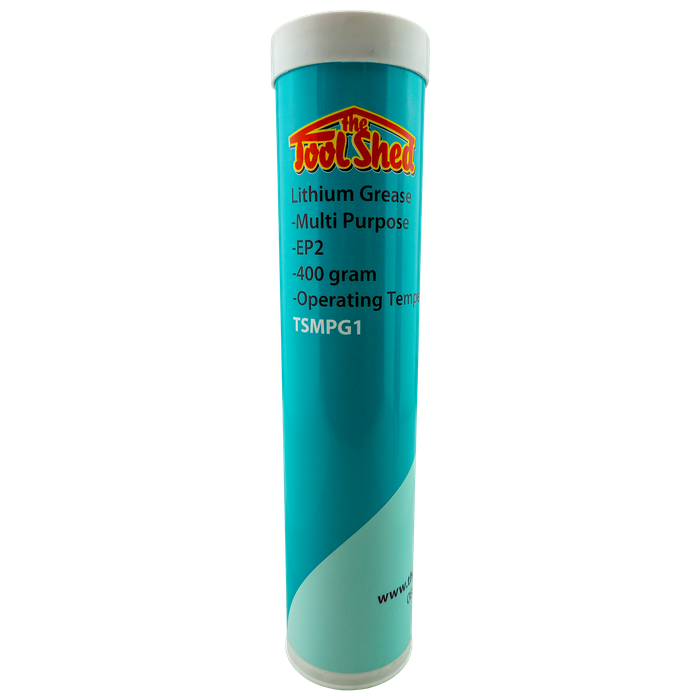 The ToolShed Multi-Purpose EP2 Lithium Grease is a high-performance lubricant designed for automotive wheel bearings, industrial machinery, electric motors, and machine tools, as well as high-temperature and vibratory applications. Formulated with EP2 lithium, it offers excellent water resistance, strong adhesion to metal surfaces, and reliable performance in demanding conditions. With an operating temperature range of -20°C to 140°C, this grease ensures smooth operation and extended component life. Available in 400g (TSMPG1) and 450g (TSMPG3) cartridges.