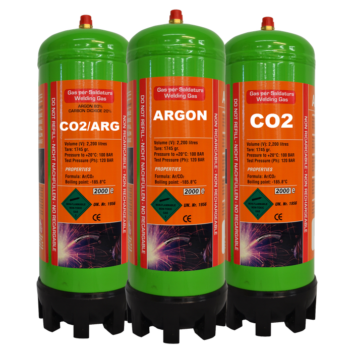 The ToolShed proudly imports high-quality 2L compressed welding gas cylinders directly from Italy. Available in three options-pure Argon, CO2, and an Argon/CO2 mix (80% Argon, 20% CO2, also known as ArgoShield)-these cylinders are ideal for various welding applications.