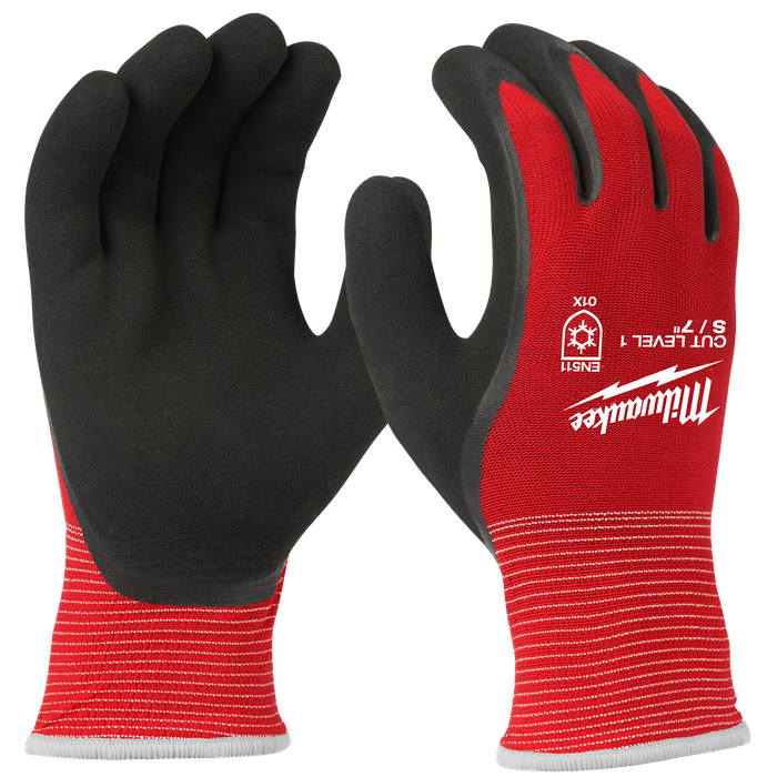 Milwaukee Cut Level 1(A) Winter Insulated gloves are designed to provide ultimate warmth, all–day comfort, and dexterity for handling small objects. The insulated winter work gloves utilize a warm 10-gauge acrylic terry liner to maintain warmth in the coldest outdoor conditions. The gloves have a secure dual thermal liner to comfortably keep your hands warm without the liner separating after extended use on the job site. These gloves feature a 15-gauge nylon outer liner resulting in high dexterity fingertips and breathability. Our cut resistant work gloves are ideal for material handling, general purpose, and remodelling applications. Our gloves are constructed of ½ double-dipped latex palm microfinish to provide superior grip performance in the coldest temperatures.