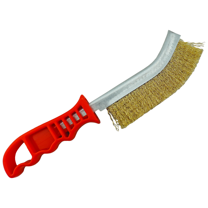 ToolShed Hand Wire Brush Heavy Duty Curved Steel Red Handle 265mm