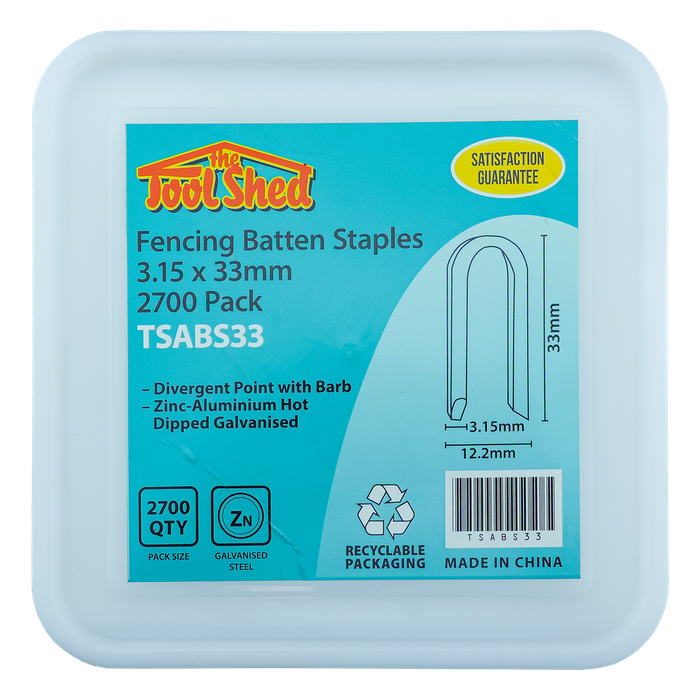 ToolShed Fencing Batten Staples 3.15mm x 33mm 2700 Pack | 3.15mm x 40mm 2100 Pack