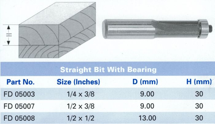 Mastercut Router Bit Straight Cutter with Bearing 1/4" x 3/8"