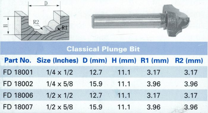 Mastercut Router Bit Classical Plunge 1/4in x 1/2in