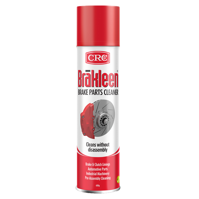 CRC Brakleen is a powerful, heavy duty cleaner and degreaser for brake, clutch parts and general mechanical equipment. It is formulated to quickly and safely dissolve and flush away grease, oil, brake fluid, transmission fluid, hardened deposits and other contaminants, without the need for disassembly. It safely settles and removes hazardous brake dust.