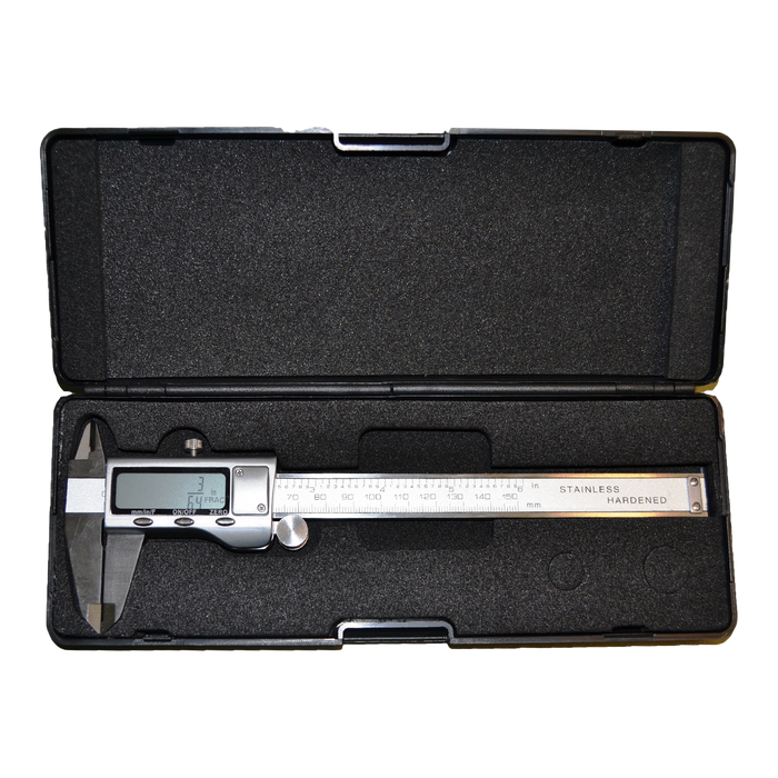 A precise stainless steel digital calliper, that, at the press of a button will give either metric or imperial measurements.