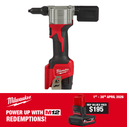 The M12™ Pop Rivet Tool is a cordless solution that delivers fast, easy riveting while maintaining performance, durability, and size. The M12BPRT-0 can pull up to 500 3/16" stainless steel rivets or 900 1/8" steel rivets on one charge with a 3.0Ah battery, and reduces muscle effort from a hand tool by 65%. No compressors or hoses during set up and operation makes this tool a great replacement to pneumatic products. Delivers maximum durability from common jobsite conditions and use. This is the most compact cordless rivet tool on the market, measuring only 165mm in length allowing users more access in tight spaces. The M12™ Pop Rivet Tool is part of the M12™ battery platform, offering 50+ solutions on one battery system.