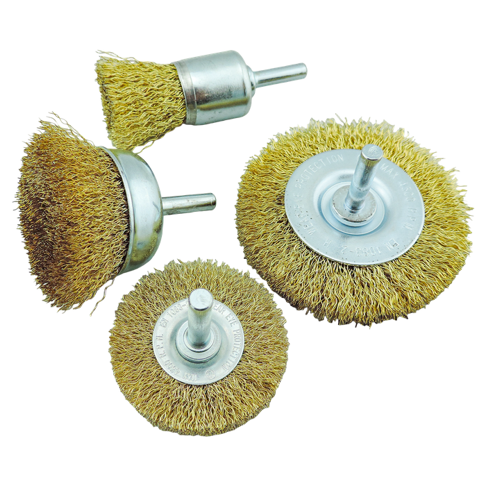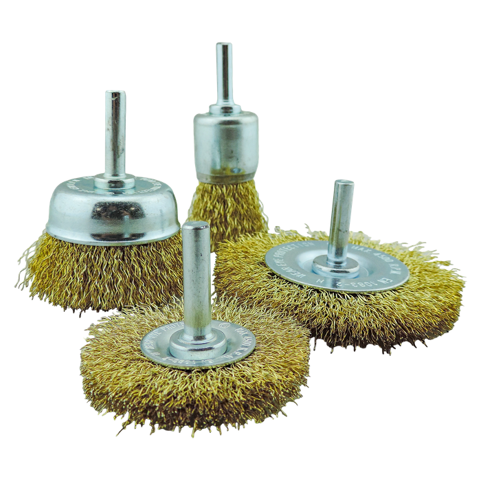 Check the picture, a range of different shapes and sizes available including cup brushes, wire wheels and straight