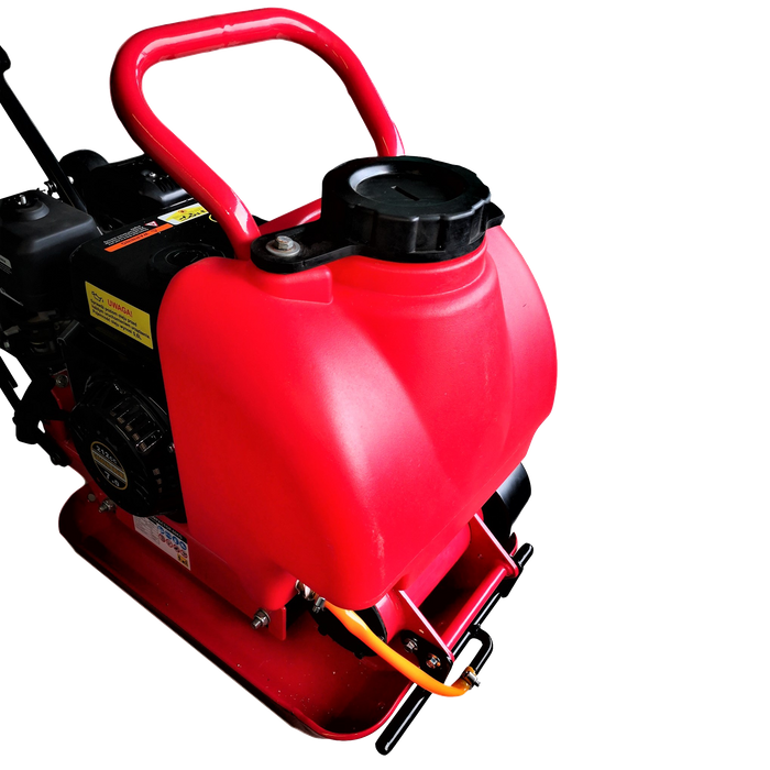 This water tank has a tap leading to a bar that is mounted in the front of the plate.It has 4 holes which enables it to dribble water out at a constant speed in the front of the compactor. Water flow can also be adjusted via the control tap on the bottom of the tank.