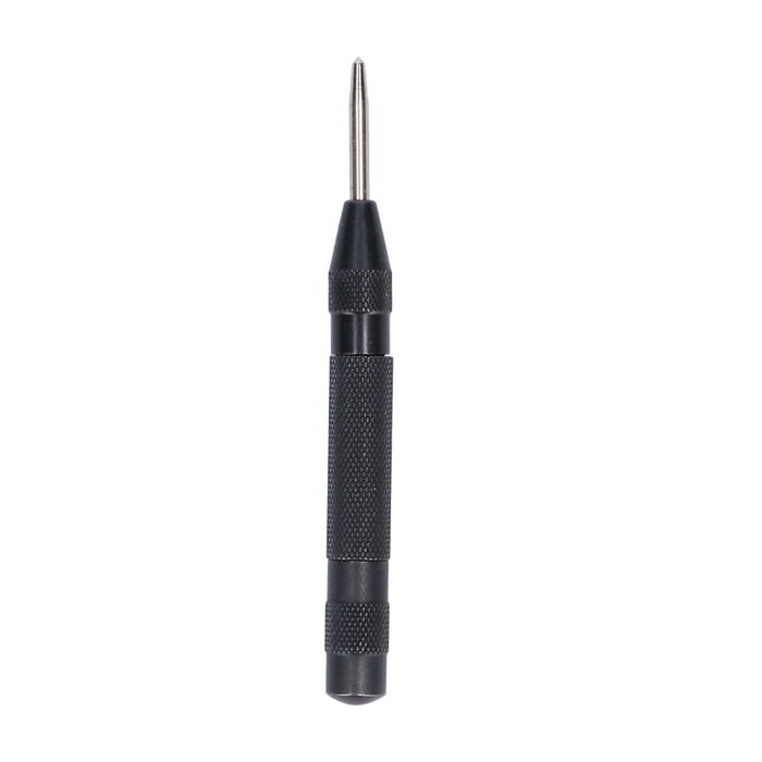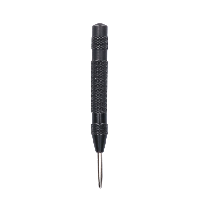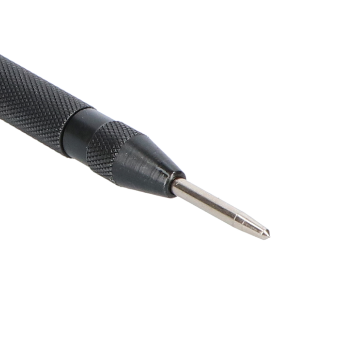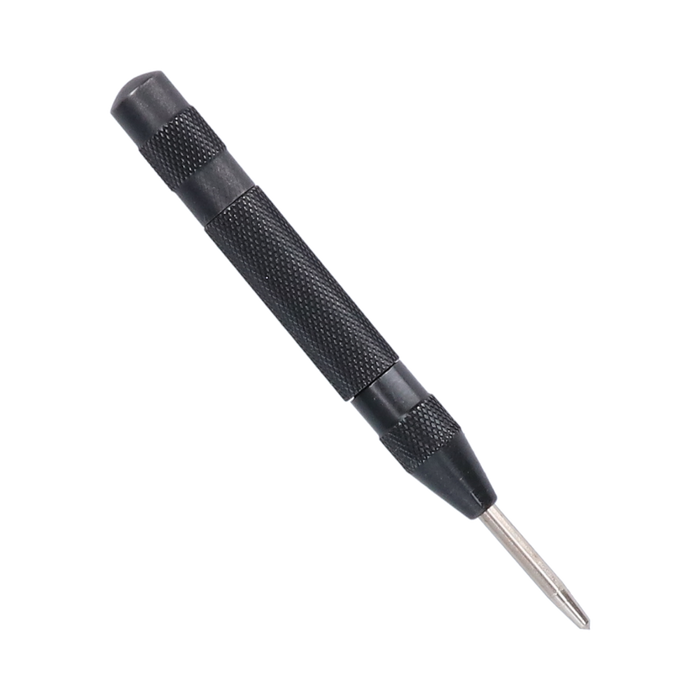 All that is required is to simply push down, causing the punch to jump, which will make a centering mark for drill bits, or for general position marking on your workpiece. Can be used on wood, steel, and some stone and plastics.