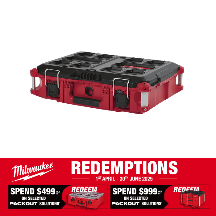 Users can also choose to utilise the PACKOUT Large Tool Box or PACKOUT Tool Box to securely stack and transport on top of the PACKOUT Rolling Tool Box. Each features an internal organisation tray for hand tools and accessories. All Tool Boxes in the PACKOUT System are constructed with impact resistant polymer, IP 65 rated seals to prevent damage from water and jobsite debris, metal reinforced corners, and TICK™ mounting locations on the lids.