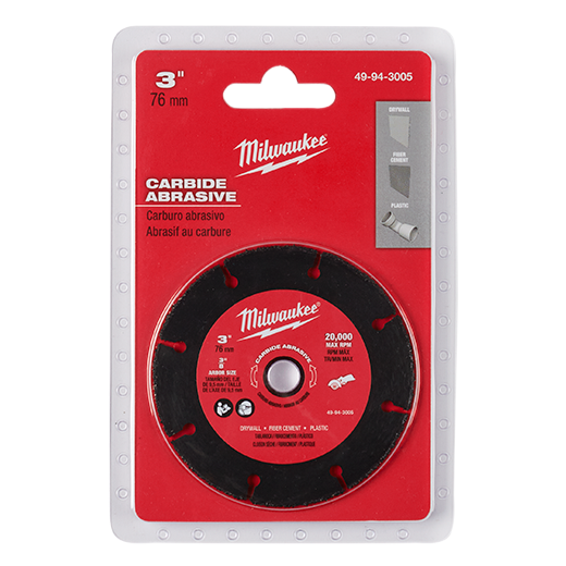 The Milwaukee 49943005 is a 76mm Carbide Abrasive Blade intended to be a general-purpose blade paired with the Milwaukee M12 FUEL™ 3in Compact Cut Off Tool M12FCOT-0. Whether it’s drywall, cement backer board, PVC, plastics, etc. this blade is a unique solution that delivers the capability to cut a wide range of materials quickly and efficiently.