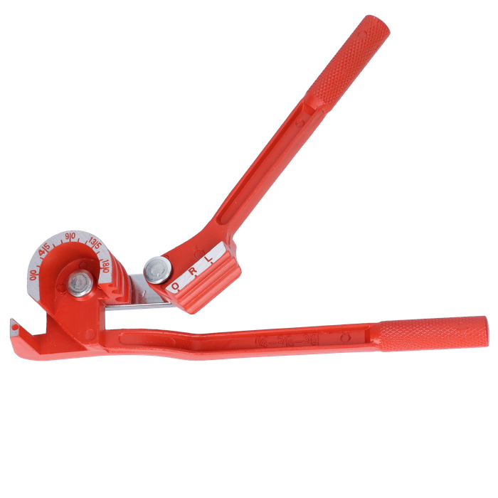 This amazing tool will bend copper or aluminium pipe up to 180 degrees. It is marked in increments of 45, 90, 135 and 180 degrees but any angle up to 180 degrees can be achieved.