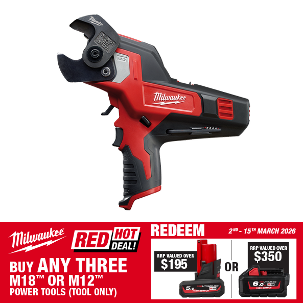 Simplify cable cutting with the one cordless tool that fits comfortably in crowded panels and generates 2,200kg of force. With an open jaw, breakthrough powered ratcheting mechanism and superior blade geometry, the M12 Cable Cutter fits into tight spaces and cuts effortlessly through large-diameter cable, leaving a clean, installation-ready cut. The compact size and scissor-style jaws enable cutting in crowded panels without looping, ratcheting or long arms. Ideal for electricians, datacomm, utility or service contractors or demolition crews, this cable cutter with 2-speed gear case delivers the power needed to cut large-diameter cable, and then switches into high speed to slice quickly through a variety of smaller and more common wire types. Powered by the revolutionary M12 REDLITHIUM-ION Battery (sold separately), this cable cutter can deliver up to 150 cuts of 240mm² Copper XLPE per charge (3.0Ah). A built-in LED light illuminates the line of cut. NOT TO BE USED FOR CABLE WITH STEEL OR STAINLESS STEEL SHEATH.