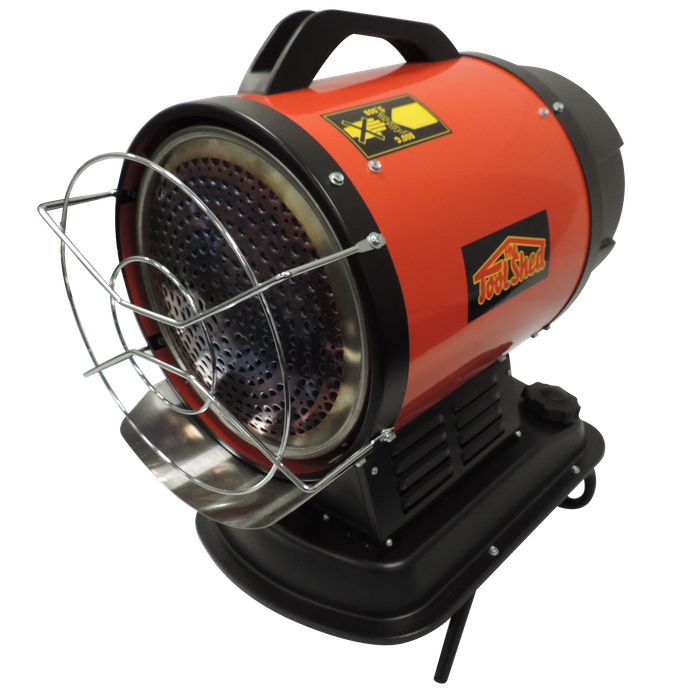 The ToolShed radiant heater combines fan force heating with radiant heating. Like the sun, radiant heaters heat the objects not the air in front of the heater. Radiant heat penetrates evenly on and into surfaces. These heaters use far less air movement, are the preferred option to reduce dust, producing very low noise compared to fan forced heaters. They are ideal for spot heating only the area or surface that needs heating in areas such as large warehouses, open sheds and even outside.