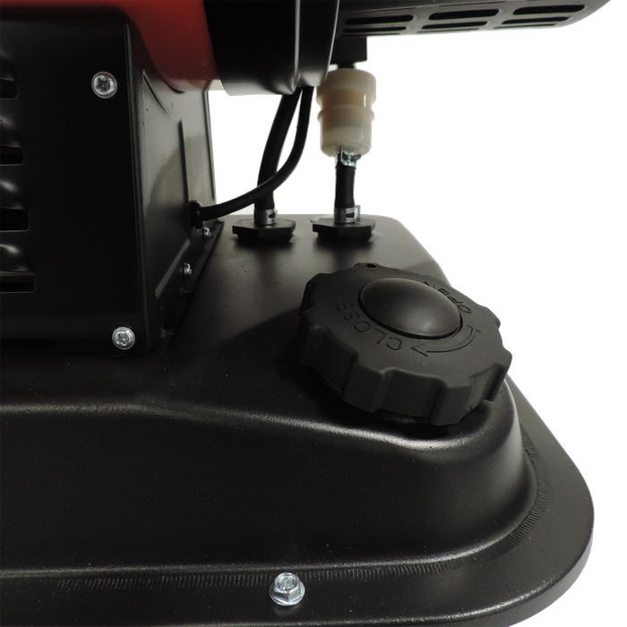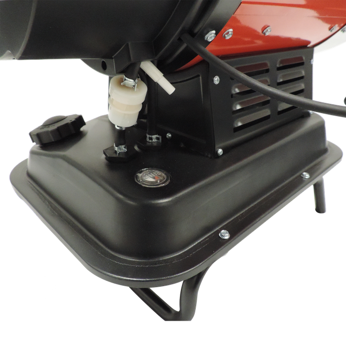 The ToolShed Radiant Diesel Heater 20kW has a built-in fan to ensure better heat distribution with a heat-resistant steel plate to ensure it can handle the heating that is thrown its way. This heater features an original DANFOSS fuel nozzle and a 10.5 litre fuel tank which you can easily keep an eye on the levels of with the fuel gauge. A built-in thermostat helps you see the temperatures while a built-in safety device will protect you and your heater from overheating. When you're done heating for the day, the cooling down fan system will kick in to bring the temperature of the heater down, letting you load it up ready for the next job.