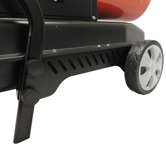 The ToolShed 30kW Diesel Heater features fan forced air for superior heat distribution, a stainless-steel combustion chamber, high efficiency combustion, fuel gauge, and automatic spark ignition. This heater also has a built-in thermostat with ambient temperature digital display and a built-in carry handle and wheels.