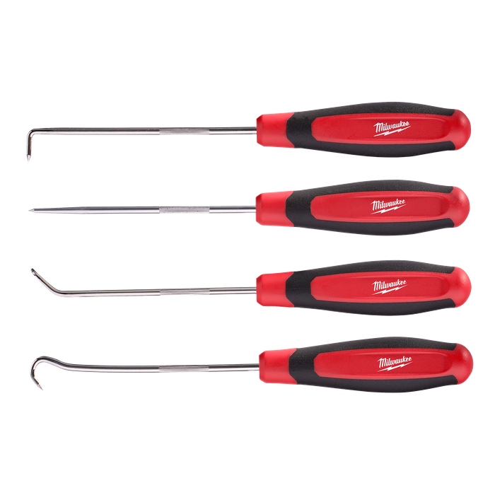 The MILWAUKEE Hook & Pick set features an All-Metal Core for maximum durability. Chrome-plated shanks reduce corrosion and provide superior rust protection. A comfort grip handle and precision knurling increase tool control and user comfort. Finally, the kit comes in an easy-access storage tray for long-term tool storage.