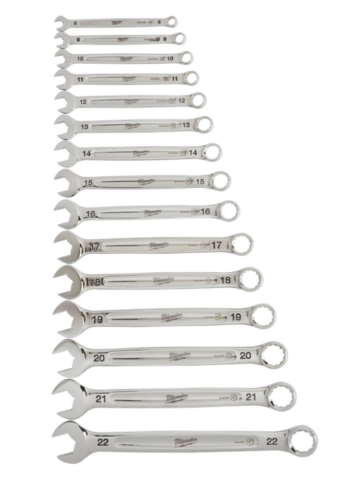 MILWAUKEE has designed our Combination Wrenches from the ground up, delivering maximum torque and ultimate user comfort. The MAX BITE Open-End Grip improves the wrench's grip on nuts and bolts, and the geometry reduces rounding and stripping. MAX BITE offers 25% More Torque than competitive wrench designs. The Comfortable I-Beam Handle Design allows superior user comfort, even while applying high torque. MILWAUKEE wrenches feature Ink-Filled Size Labels for easy size identification, and quick distinction between SAE and metric sets. The 15pc kits come in a storage tray designed for Long-Term Storage, keeping your tool chest organised. Standing behind our products, MILWAUKEE offers a Lifetime Guarantee on all of our Combination Wrench Sets.