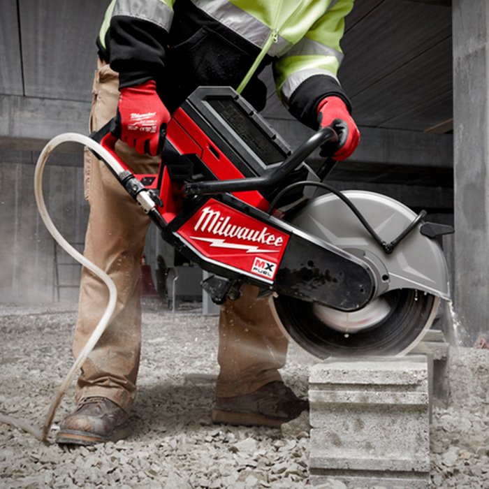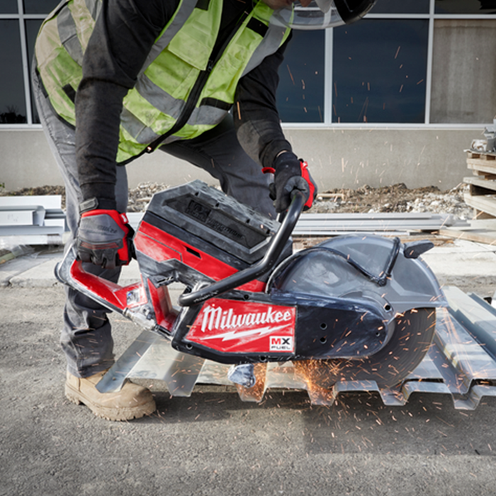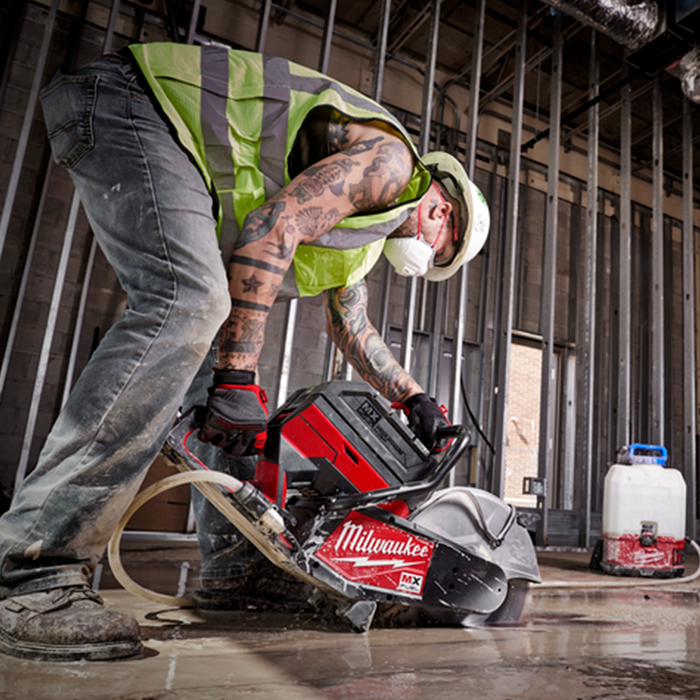 MX FUEL™, Milwaukee®'s new equipment system, goes beyond the limitations of petrol and corded units, utilising the industry's most advanced batteries, motors, and electronics to deliver the best experience for users. This is equipment, redefined. The MX FUEL™ 355mm (14") Cut-Off Saw delivers the best cut-off saw experience by providing 127 mm cut capacity, fast cuts from start to finish, and no petrol headaches. In every application, cut depth of 127 mm can be reached, finishing the job with fewer passes. Compatible with the M18™ SWITCH TANK™ 15L Backpack Water Tank Supply with Powered Base, onboard Quick-Connect allows the user to saw both wet and dry applications, as the universal quick connect hose ensures simple and highly effective wet cutting in concrete and masonry applications. The MX FUEL™ Cut-Off Saw comes with a 20 mm/ 25.4 mm (1") arbor adaptor to maximise versatility and prevent wasted time searching for a compatible blade. A Cut-Off Saw Cart is also available (sold separately). The MX FUEL™ Cut-Off Saw is ONE-KEY™ compatible, allowing users to track and manage the tool. No emissions, less vibration, and quiet operation allows users to work safely and be more productive