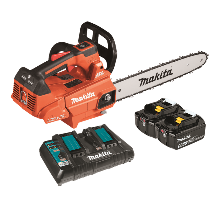 - Makita LXT Cordless Chainsaw Brushless Top Handle Orange 14in 36V (2x18V) 5Ah
