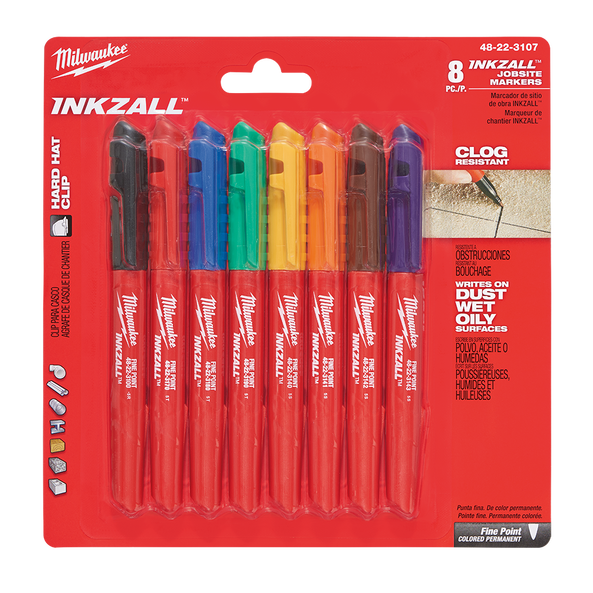 - Milwaukee INKZALL Fine Point Markers Assorted Colours 8pk