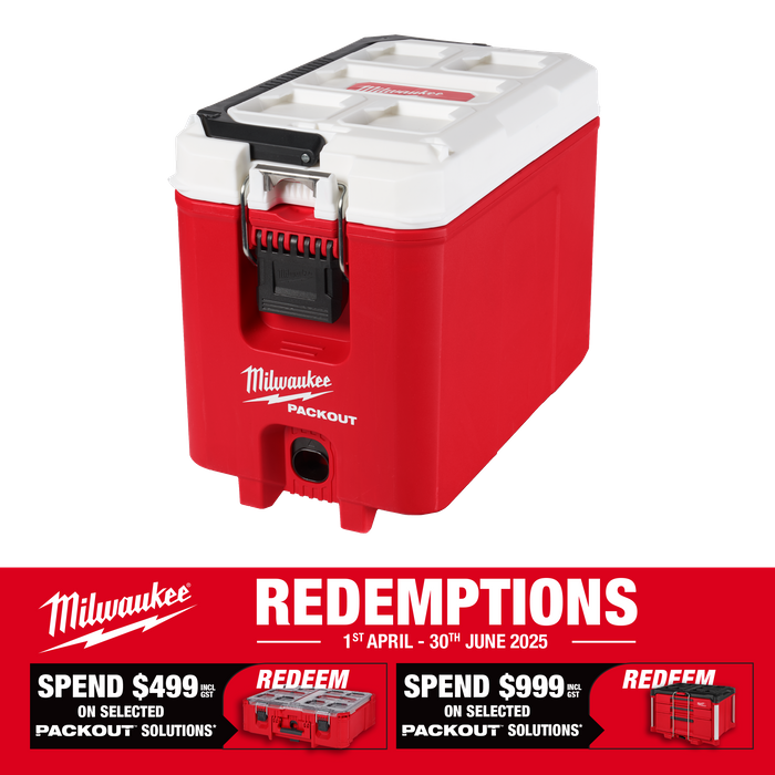 The PACKOUT™ Modular Storage System is the industry's most durable and versatile storage system. The PACKOUT™ Hard Sided Cooler holds ice for up to 30 hours, and we've constructed it with impact-resistant polymers for ultimate jobsite durability. This cooler is IP65 rated to withstand harsh environments and jobsite debris. This cooler comes with an integrated bottle opener and interior storage tray offers you maximum versatility on and off the jobsite with a no-sweat exterior. The MILWAUKEE® PACKOUT™ Modular Storage System allows you to customise a storage system that easily transports and organises your tools and accessories.