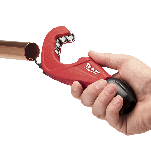 The MILWAUKEE 38mm (1.5") Constant Swing Copper Tubing Cutter is engineered for straighter, cleaner cuts. A4 roller design delivers accurate cuts and prevents walking. For added durability and extended performance, chrome rollers provide best in class rust protection. An on-board reamer enables fast, easy deburring.