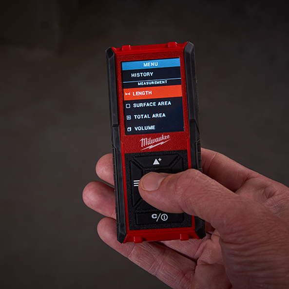 MILWAUKEE 45M Laser Distance Measurers are designed to provide the easiest measurements from all orientations, and feature an array of new functionality: 2” colour screens offer maximum visibility in low light conditions. Each features a simplified user interface that has been designed from the ground up for fast navigation so users can quickly choose their function and take a measurement with minimal downtime. For additional ease of use, the 45M Laser Distance Measurers includes a built-in 2-position auto-detecting lever so users can easily measure in corners. Each 45M Laser Distance Measurer offer several different measurement functions that allow users to add and subtract values and calculate linear distance, surface area, total area and volume. In addition, each tool includes memory storage for 30 readings and impact-resistant overmold for protection from tough jobsite conditions. MILWAUKEE Laser Distance Measurers also feature a side shot button for an easier, more ergonomic experience when measuring in all directions.