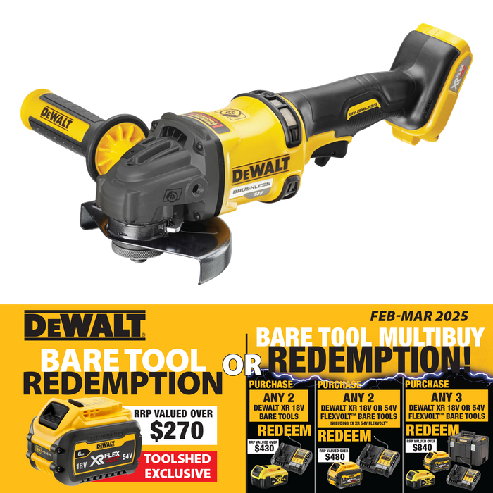 - DEWALT Flexvolt Cordless Angle Grinder Brushless 125mm Gen2 54V - Bare To
