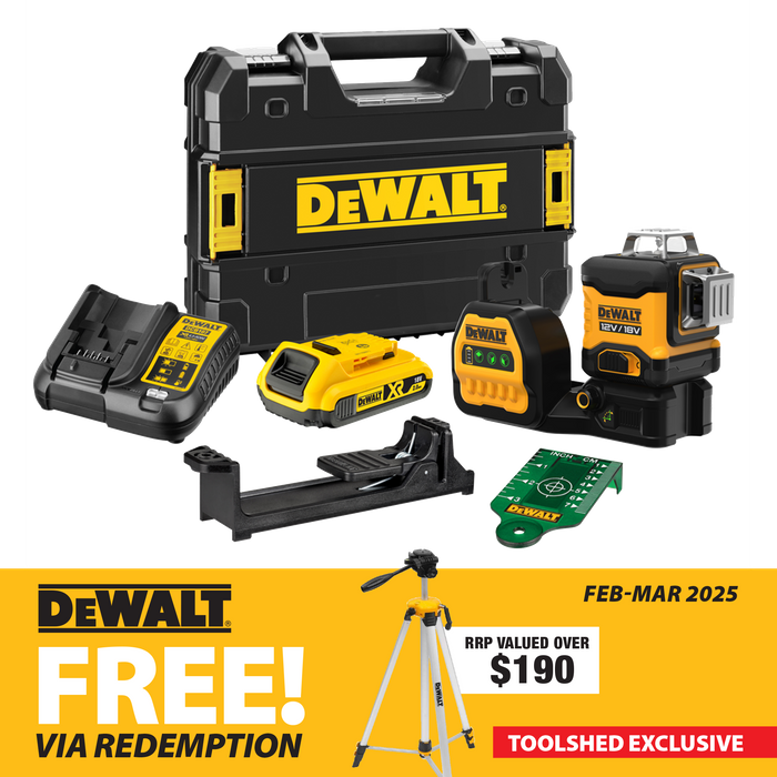 - DEWALT Cross Line Laser 1080deg (3x 360) Green Beam 18V 2Ah