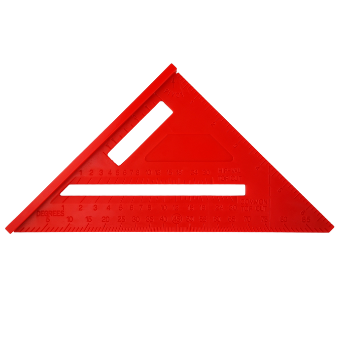 Versatile layout tool works as a rafter square, try square, protractor, or power saw guide