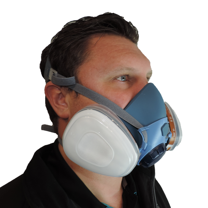 The ToolShed twin cartridge respirator is ideal for working in environments with noxious dust and fumes such as Spray painting, Pesticide spraying, etc or working with paint thinners, lacquers and glues. Features a soft silicone mould that is very comfortable to wear as well as moulding to your face to provide an optimum seal. Fitted with 4 easily adjustable elastic head straps that hold the mask comfortably and securely in place. All compliant to AS/NZS certifications.