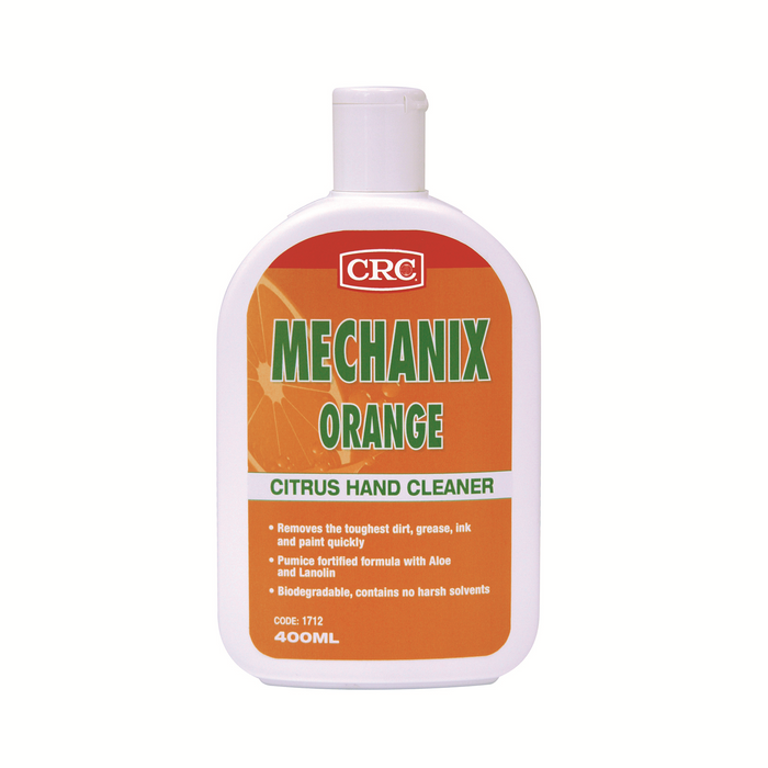 CRC Mechanix Orange Hand Cleaner is a powerful citrus-based hand cleaner formulated with natural d-Limonene for quick and effective removal of toughest soils. Fortified with high-quality fine-grade pumice and conditioning agents it provides serious scrubbing power and leaves hands clean and fresh. The pH balanced formula is gentle to hands and will not dry out skin.