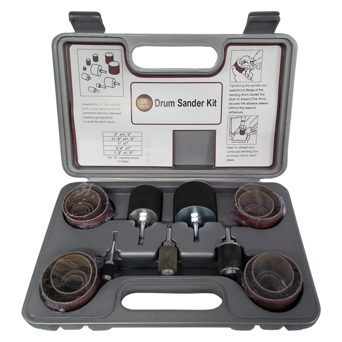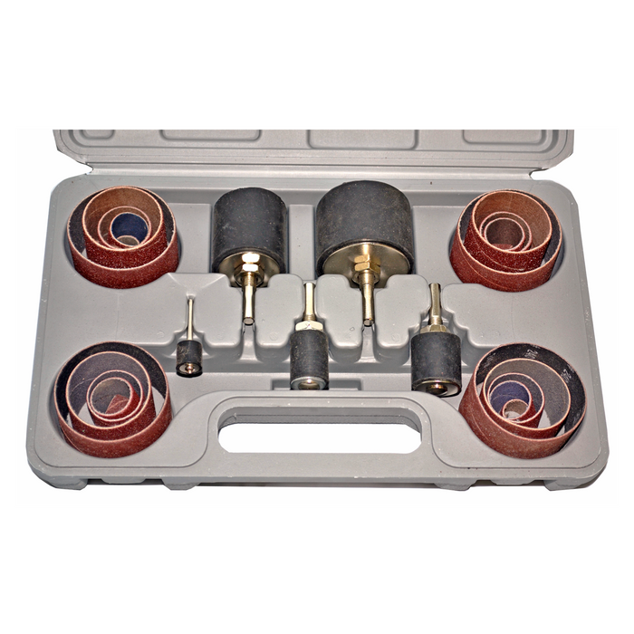 Combined with a drill, this set allows the operator to sand a wide range of materials especially those with tight curves. Great for toy makers, cleaning up scrolling work.