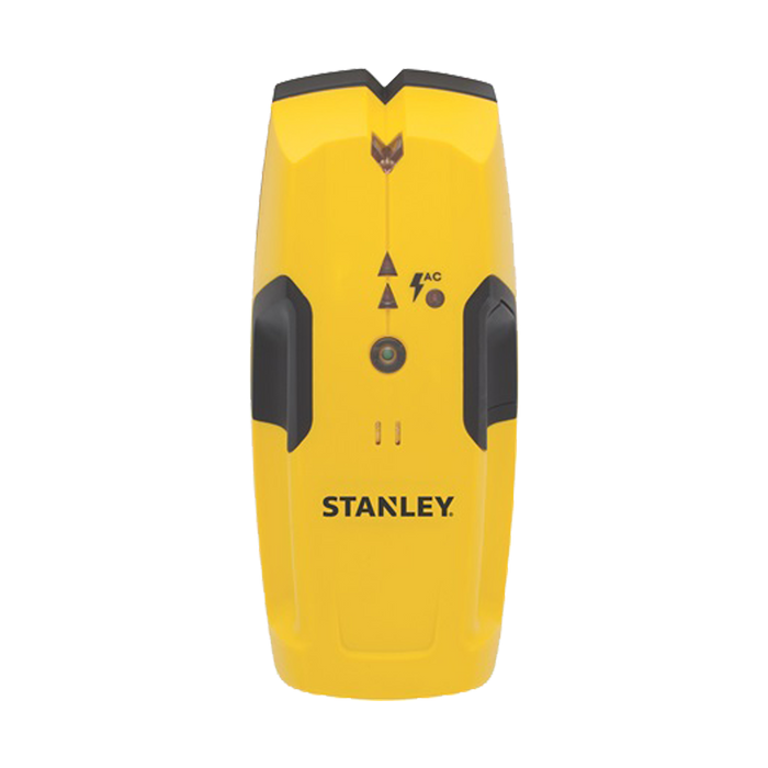 The STANLEY® Stud Sensor 100™ is a wood and metal stud finder that detects studs up to 3/4 inch below surface material with sequential LEDs and audible beeps. It can also find AC wires up to 2" below the surface.