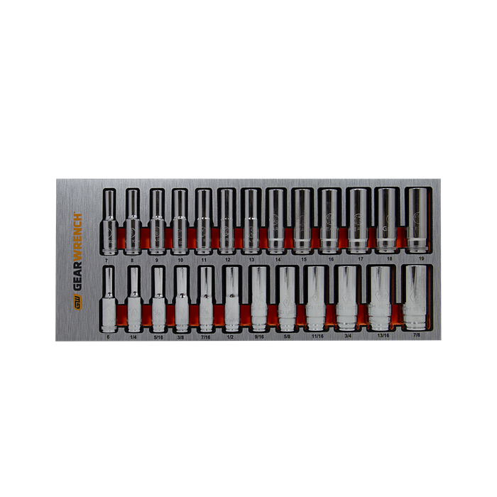 - GEARWRENCH Socket Set 3/8in Dr Metric/SAE Deep 25pc in EVA Tray