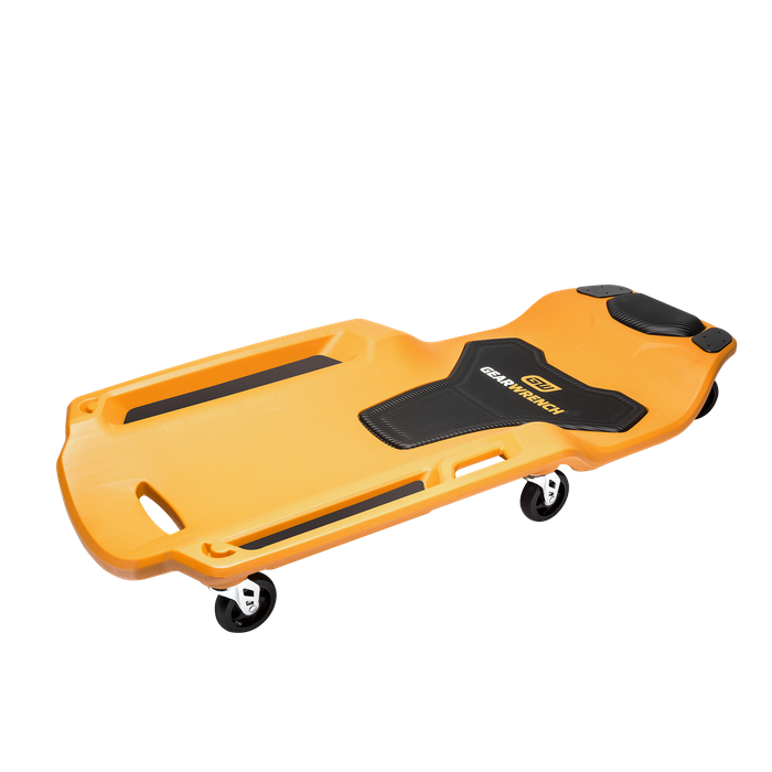 The GEARWRENCH® Mechanics Creeper provides optimum access to any low-clearance overhead work application. Six smooth-rolling offset TPC (thermoplastic copolyester) casters and a concave custom-molded composite tub provide excellent mobility and light weight. Durable EVA (ethylene-vinyl acetate) padding offers outstanding comfort with minimum thickness for an exceptionally low working height.