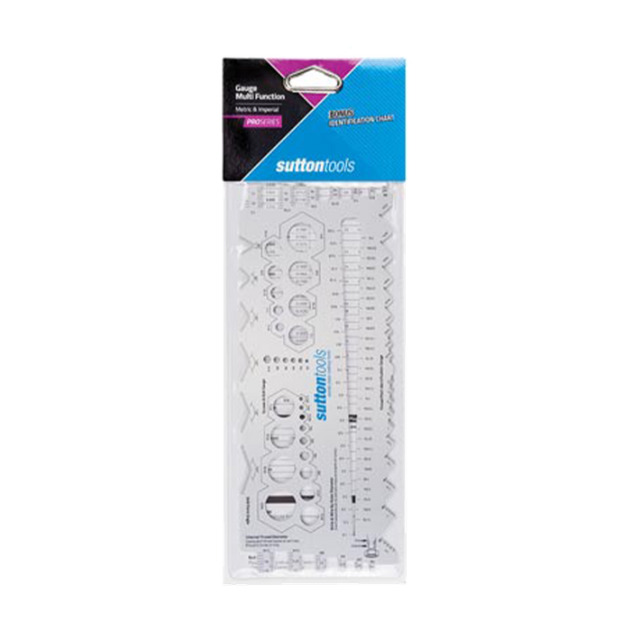 Sutton Tools Pro-Series multi function gauge is a super-handy measuring tool for fast and accurate identification of drills, fasteners, nuts and threads.