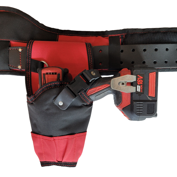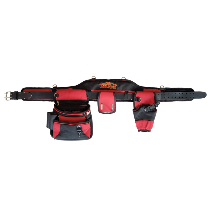 The new range of ToolShed Nylon Builders Aprons meet the high demand for the modern builder and construction worker. These aprons are designed to be worn backwards compared to traditional aprons so the pouches sit on the side of your hips and the steel hammer holder is at the rear. This keeps the front of your body free and easier to move around, climb ladders and scaffolding plus carrying items around. The nylon pouches are light yet extremely strong and durable plus come with many different pockets to suit your requirements. This particular apron has one large pouch, hammer holder plus a drill/impact driver holder.