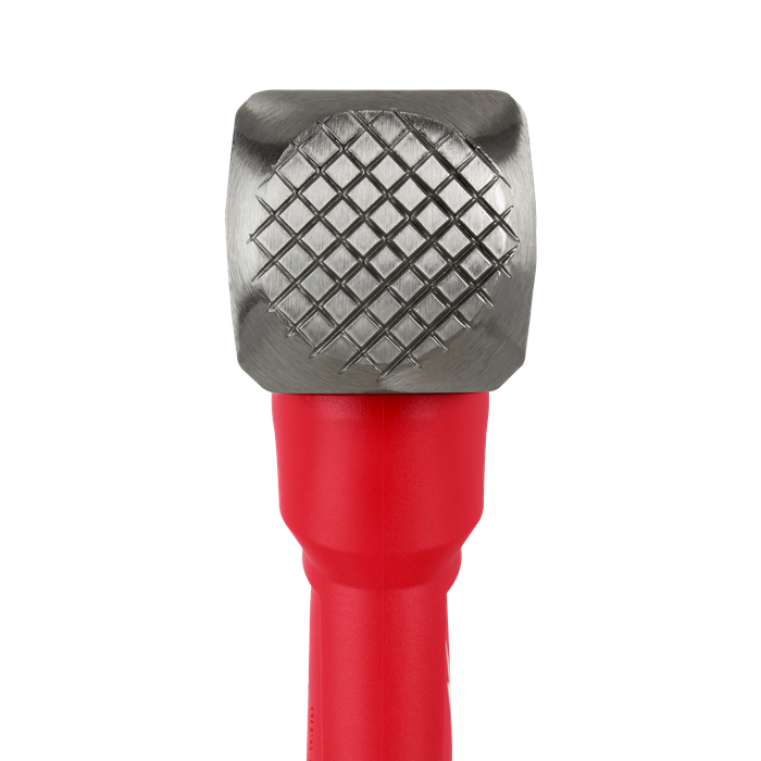 The Milwaukee 3lb Drilling Hammer features one milled and one smooth faced for unmatched versatility on jobsites. The milled face grips chisels, punches, stakes, and spikes to reduce slippage or misstrikes, while the smooth face can be utilised for a wide range of striking applications. The drilling hammer is designed with a high strength fiberglass handle and reinforced overstrike protection to offer ultimate power and durability. It is also precision balanced for ease of use and provides forceful blows with less effort.